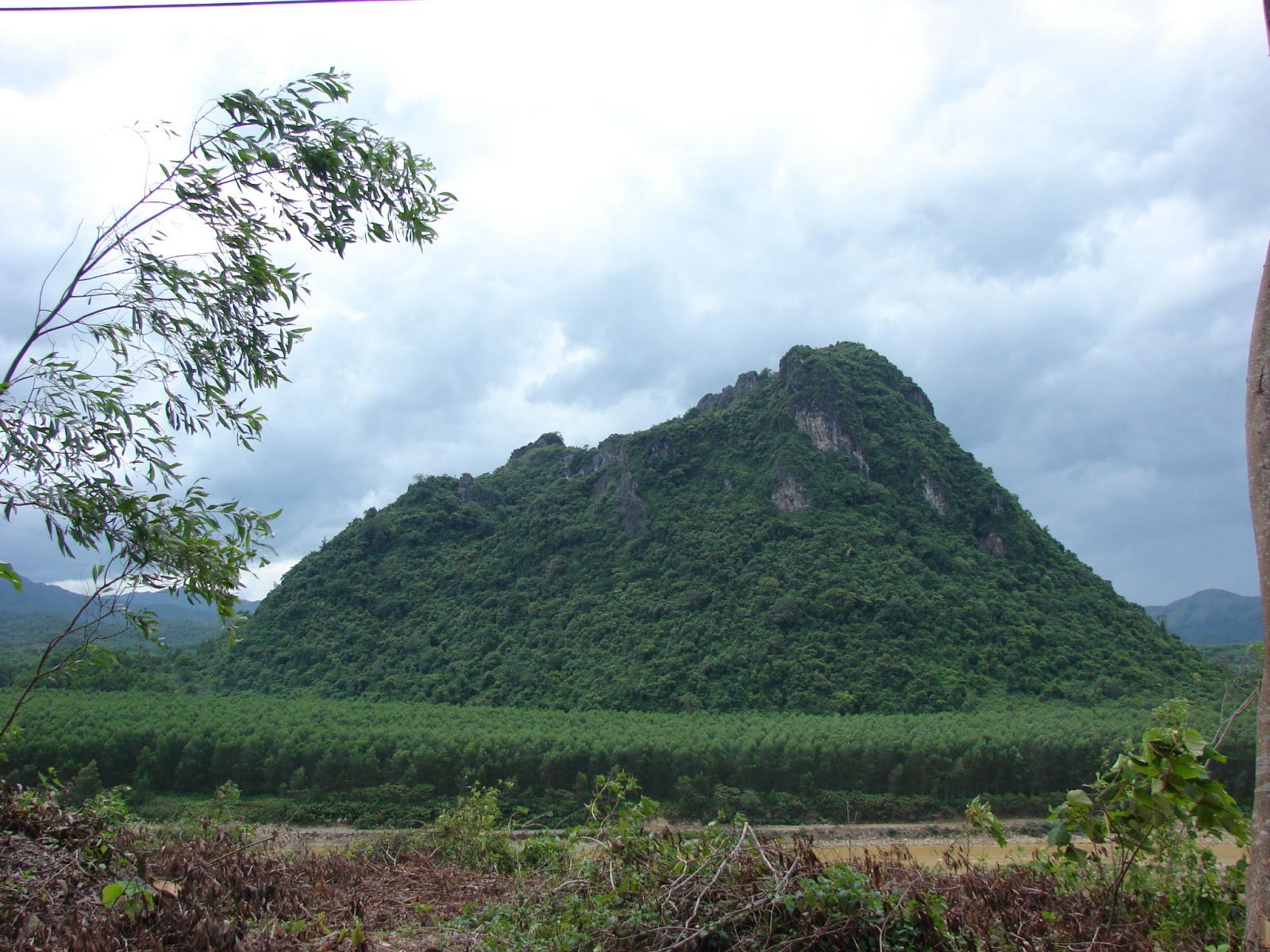 We stayed overnight in Khe Sanh and headed out the next morning on the West Ho Chi Minh Trail, direction north. It rained the whole day... the whole day!!! The humans were all suited up in blue rain gear and I was tucked in a plastic bag in Mama's backpack... which was a good thing!! The big plastic bag that held Mama's backpack leaked and so all of her books and even the laptop got a bit wet. But not me... I was snug and dry (whew!!!). Luckily the laptop dried out or else that would have been the end of my blogging!!!