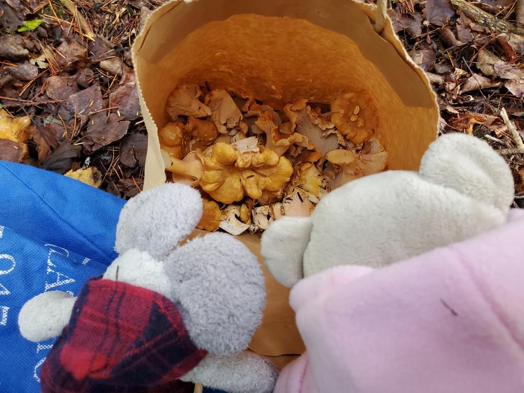 Anyhow... while we're here, we decided to go find some chanterelles for Gramma. Navy's never been mushroom picking though.